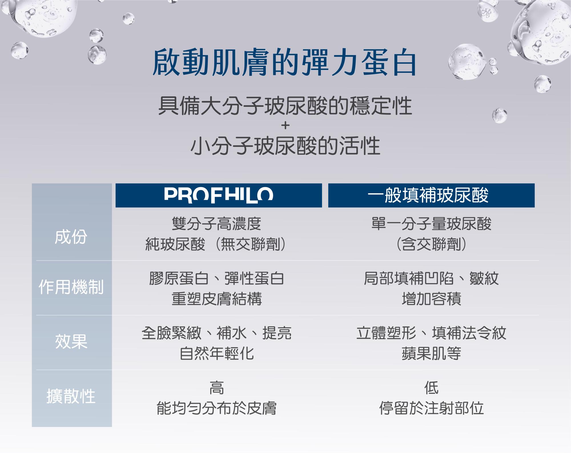 1. 獨特成分與製程:PROFHILO逆時針的特殊製程巧妙結合高分子量和低分子量的玻尿酸,不含BDDE等化學交聯劑,與人體相容性高,代謝快且安全性佳。