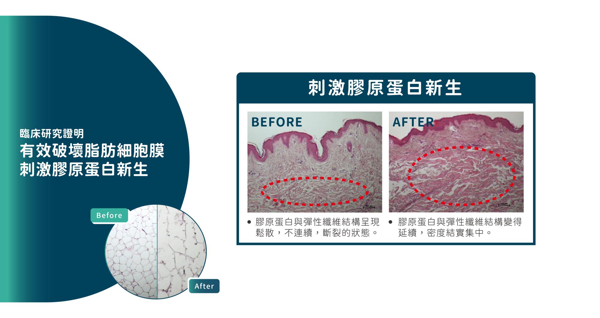 2.45GHz超高頻率的微波技術可以深入到皮下0.7-1.2cm,快速加熱深層脂肪細胞,使脂肪周圍升溫去破壞脂肪細胞膜造成受損,受損的脂肪細胞因裂解作用,進而激發吞噬細胞啟動,將壞死細胞代謝並經由人體正常排出,使脂肪細胞數量減少,改善局部頑固脂肪型鬆垂的外觀。