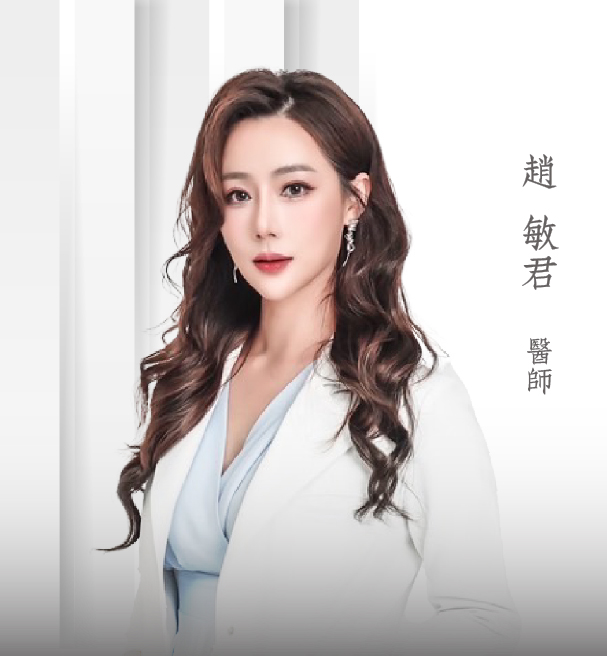 -經歷- * 中國醫藥大學醫學系學士 * 美國加州大學柏克萊分校細胞與分子生物學系學士 * 中國醫藥大學附設醫院 醫學影像部前主治醫師 -專長- 各式雷射光療 肉毒除皺、瘦小臉 玻尿酸注射 膠原蛋白增生劑 埋線拉提 電波/音波 異體真皮 蝴蝶電波 -認證- MegaDerm美佳膚異體真皮原廠認證醫師 Focus Dual 雷神微針電波原廠認證醫師 MERZ Xeomin One 21 Training village 天使肉毒原廠訓練營 提美拉 Miracle Thread Meteora美特拉 臉部拉提埋線原廠認證醫師 提美拉 Miracle Thread Meteora美特拉 鼻雕埋線原廠認證醫師 蝴蝶電波原廠認證醫師 Lumecca IPL 三倍光原廠認證醫師 DIOLAZE XL海神雷射原廠認證醫師 AestheFill艾麗斯專場研討暨臨床應用證書 Letybo 肉毒原廠講師