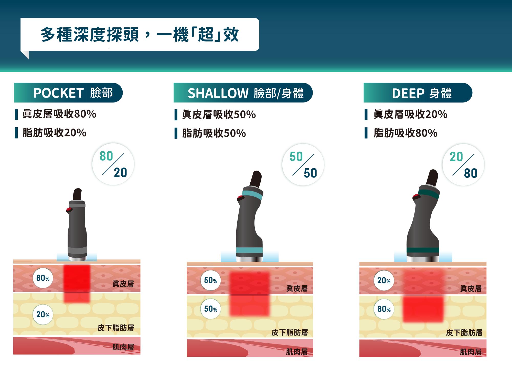 → 快速穿透皮膚表皮與真皮層,熱能更集中。